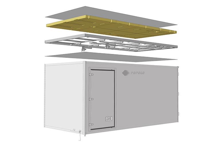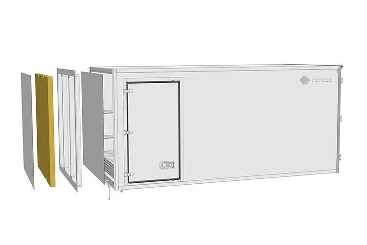 - 단열 심재는 압출 폴리스티렌(XPS), 폴리우레탄(PU) 또는 폴리에스터 폼을 사용하는 것이 좋습니다. 이러한 폼은 열전도율이 매우 낮고 단열 성능이 뛰어나 냉장 장치의 높은 효율을 보장합니다.