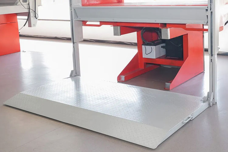 단점은 플랫폼이 일반적으로 트랙에 대해 90도 각도로만 작동하기 때문에 고르지 않은 지면에서 접지력이 떨어질 수 있다는 것입니다. 또한, 적재 용량이 캔틸레버형 또는 접이식 테일 리프트보다 일반적으로 낮습니다.